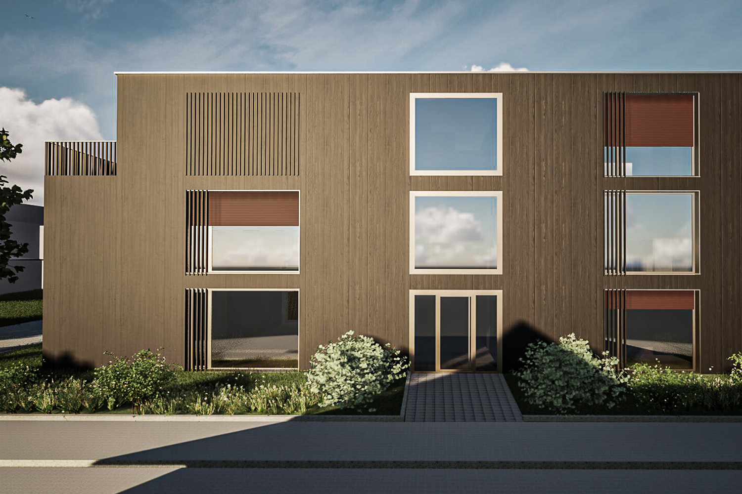 Das Konzept des dreigeschossigen Mehrfamilienhauses folgt dem Typus des Zweispänners. Auf zwei Vollgeschossen und einem Attikageschoss entstehen 5 Wohneinheiten, die durch grosszügige, gut belichtete Grundrisse überzeugen.